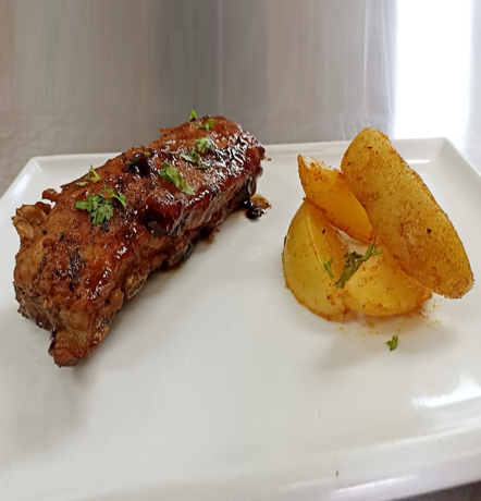 Preheat the oven to 250 °F/ 121°C. Cover the ribs with salt and Gaya allspice. In a saucepan, heat olive oil and seal the ribs from all sides.